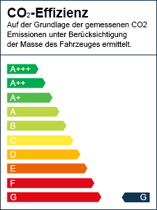 Hinweis auf den DAT Leitfaden: Weitere Informationen zum offiziellen Kraftstoffverbrauch und den offiziellen spezifischen CO2-Emissionen neuer Personenkraftwagen können dem "Leitfaden über den Kraftstoffverbrauch, die CO2-Emissionen und den Stromverbrauch neuer Personenkraftwagen" entnommen werden, der an allen Verkaufsstellen und bei der Deutschen Automobil Treuhand GmbH (https://www.dat.de/co2) unentgeltlich erhältlich ist.